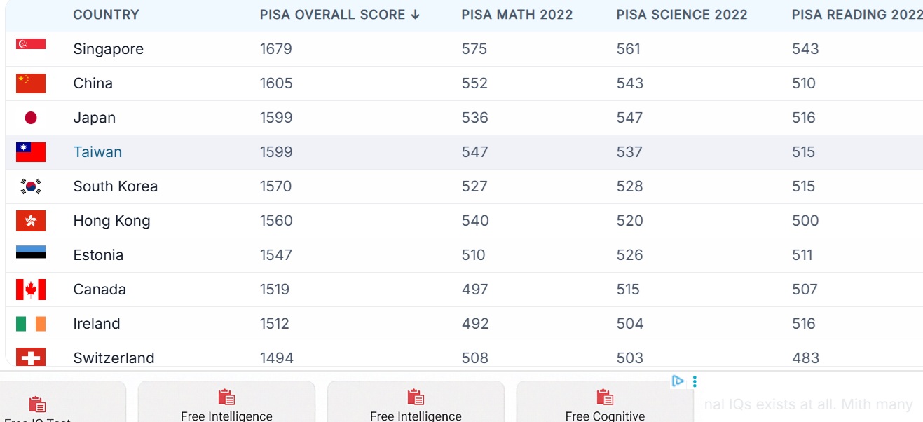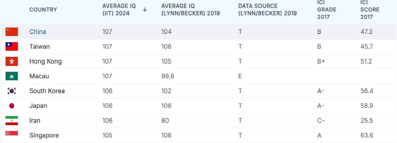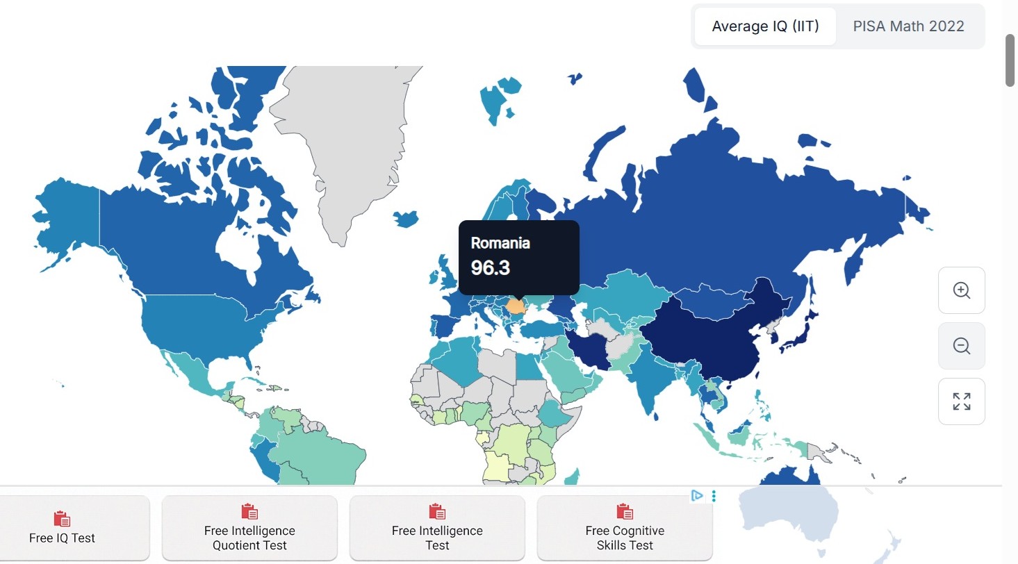 Clasamentul IQ – urilor în 2024. România, între Bangladesh și Cuba / China și Taiwan conduc detașat