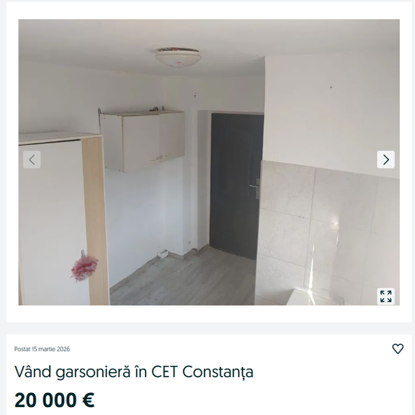 O persoană a scos la vânzare, pe platforma Olx, o garsonieră în Constanța. Potrivit anunțului, prețul ei este de 20.000 de euro, așa cum se poate observa în imaginea de mai jos. În galeria foto a acestui articol puteți observa cum arată locuința din Dobrogea.