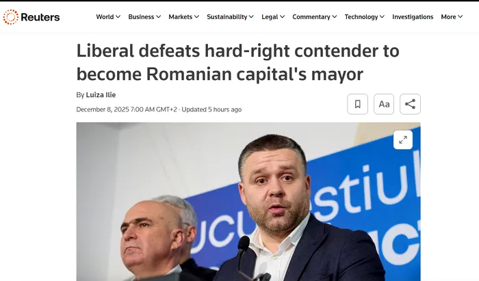 Vestea alegerii lui Ciprian Ciucu ca primar al Bucureștiului a ajuns și în presa internațională, dar accentual s-a pus mai mult pe contextual politic din România – o luptă între suveranism și politica liberală. „Politicianul de centru-dreapta, Ciprian Ciucu, va fi noul primar al Bucureștiului după ce a învins un candidat de extremă dreaptă în alegerile de duminică”, scrie Politico. Ciucu, apropiat al premierului Ilie Bolojan, a obținut aproximativ 36% din voturi.