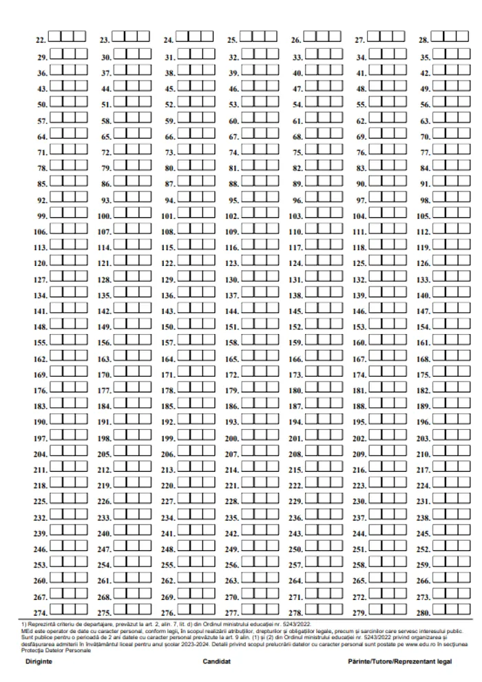 - 6-7 și 10-14 iulie 2023 – Introducerea în baza de date computerizată (în aplicația informatică centralizată) a datelor din fișele de înscriere.