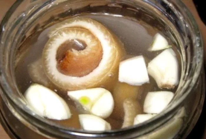 Mai întâi se curăță bine bucățile de șorici de grăsime, apoi se spală bine. Se rulează fiecare bucată de șorici cât mai strâns și se leagă cu ață. Dacă se ține cont de acest procedeu, acest lucru va folosi la tăiere. Se ia un borcan de sticlă și se așază rulourile. Peste rulorile de șorici se vor așeza cățeii de usturoi tăiați în felii, apoi frunzele de dafin și boabe de piper. Apoi, pune apă rece într-o cratiță și dizolvă o lingură și jumătate de sare grunjoasă. Se amestecă cât mai bine până ce sarea se dizolvă complet.