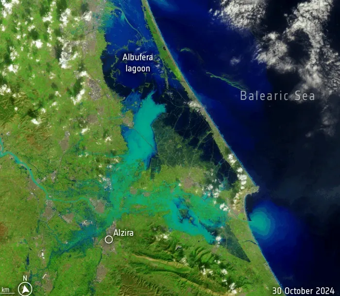 Inundațiile grave din Spania sunt atât de extinse și de grave, încât zona arată din spațiu ca o mare interioară. Imaginile din satelit făcute pe 8 octombrie, înainte de inundații și, respectiv, pe 30 octombrie au arătat cât de mult au afectat inundațiile peisajul în partea central-estică a coastei Spaniei.