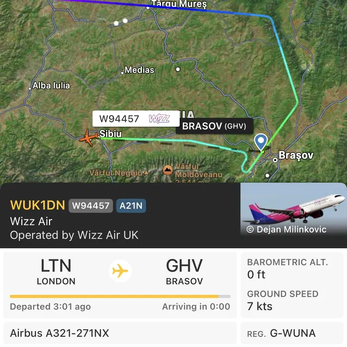 Zborul Wizz Air W94457 Londra LTN – Braşov, din data de 1 ianuarie 2024, a fost direcționat către aeroportul din Sibiu.