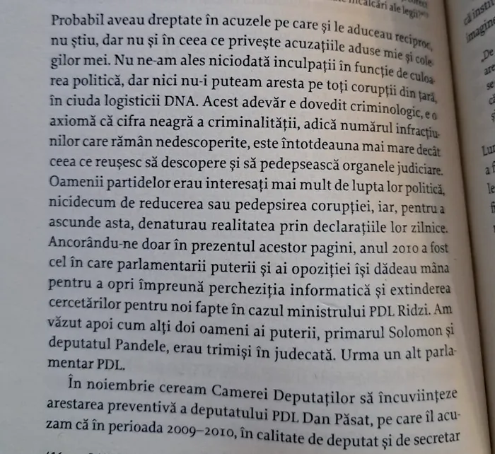 Iată ce scrie fostul șef al DNA despre perioada 2009-2010, atunci când a înaintat ministrului Justiţiei solicitarea de a sesiza parlamentul României – Camera Deputaţilor pentru încuviinţarea reţinerii şi arestării deputatului de Giurgiu PDL, Dan Păsat, pentru şantaj.