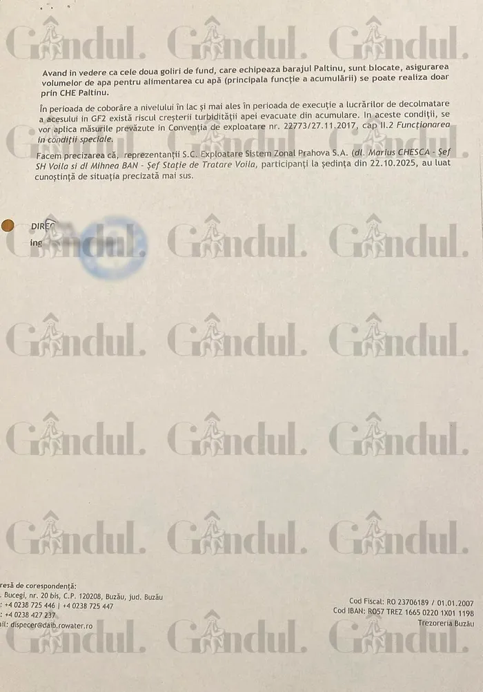 GÂNDUL demontează versiunea publică a ministrului de la Mediu și arată că în minuta ședinței în care s-a spus negru pe alb despre riscurile cu privire la creșterea turbidității apei a fost prezent și un reprezentant al ministerului „păstorit” de Diana Buzoianu.