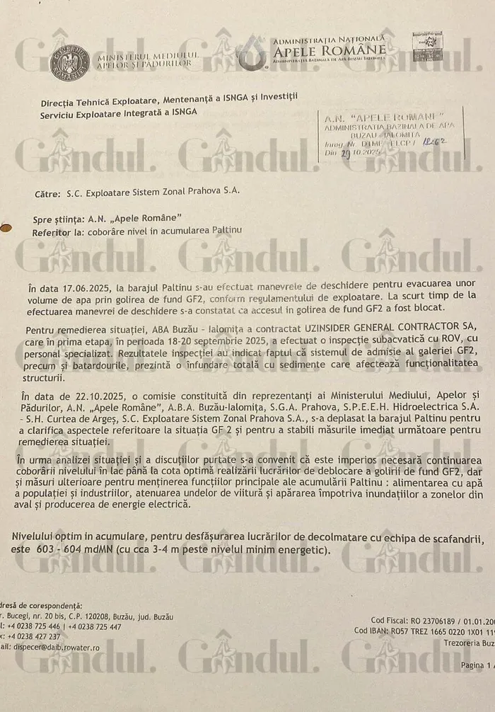 „Sunt două lucrări care au loc împreună cu Hidroelectrica, împreună cu Apele Române. Toate autoritățile știu de aceste lucrări. Sunt două lucrări total separate, deci n-au legătură între ele. Sunt controlate, sunt făcute tocmai pentru a realiza anumite obiective în zonele respective. Dacă la Vidraru este vorba de o retehnologizare care trebuie să fie făcută, practic apa este luată de acolo și se dă drumul controlat pentru a vedea unde mai sunt probleme, pentru a se face remedierile și pentru a întări astfel infrastructura din zona respectivă, la Paltinu este vorba de o colmatare care a fost descoperită acum câteva săptămâni sau acum câteva luni și a trebuit să fie scăzut nivelul apei pentru a se putea elibera zona respectivă.