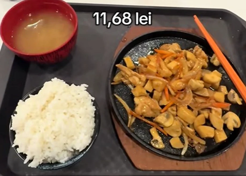 „Am mâncat o clătită cu multe chestii în ea – pui, sosuri, de toate – pentru care am plătit 6,76 lei. Am luat și o sticlă de apă, 1,17 lei”, a explicat studenta, arătând și bonul fiscal.
