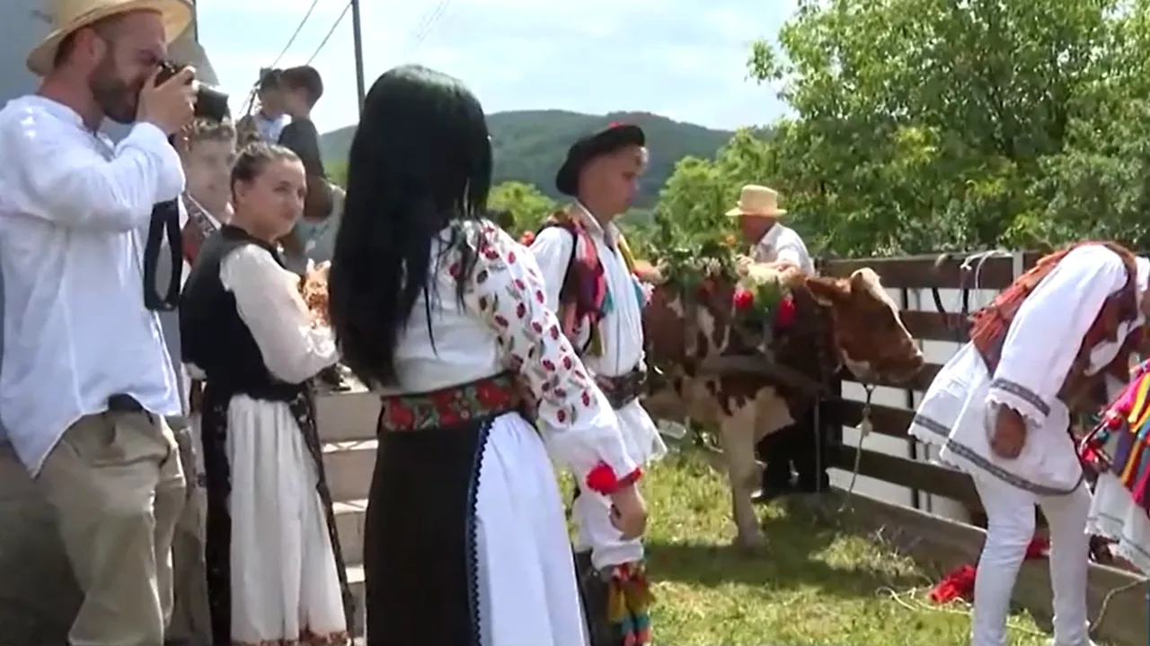 De Rusalii, oamenii din județul Bistrița-Năsăud respectă o sărbătoare agrară veche de sute de ani: „înstruțatul boului”. Animalul e împodobit cu flori și fugărit de fecior pe ulițele satului, iar fetele trebuie să-l atingă pentru a-și cunoaște ursitul.