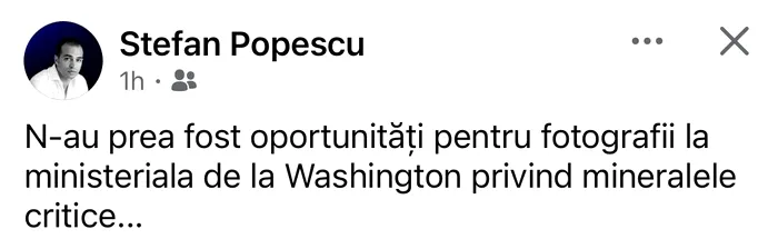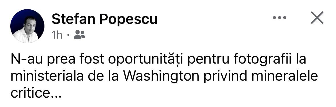 Ministrul de Externe, Oana Ţoiu, este ironizat și de către analistul politic Ştefan Popescu, care remarcă, într-o postare pe Facebook, că reprezentanta României a plecat aşa cum a venit de la Summitul Mineralelor Rare de la Washington. Adică, fără să aibă vreo întâlnire cu secretarul de stat al SUA, Marco Rubio, şi, deci, fără nicio poză.