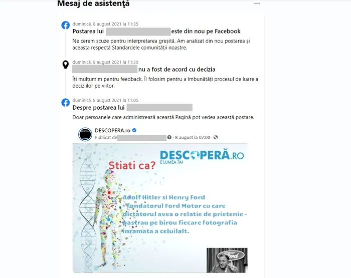 DESCOPERA.ro a fost restricționat pe nedrept de Facebook din cauza unor postări pe subiecte de istorie