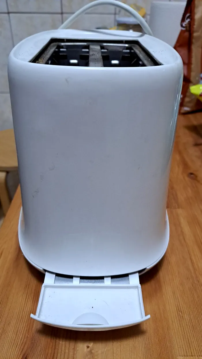 El chiar a postat o fotografie, arătând tava care poate fi ușor glisată de sub aparat. Aceasta colectează toate firimiturile și trebuie doar să fie scoasă pentru a fi aruncate la coșul de gunoi.