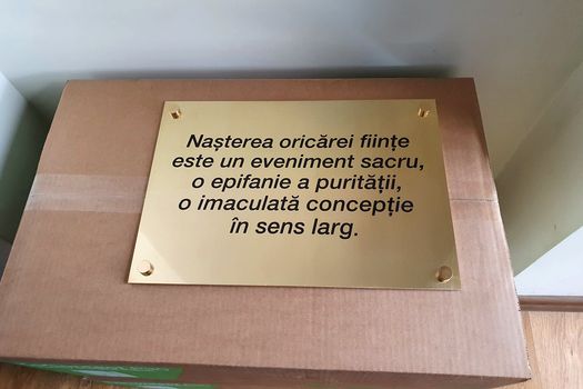 ”Lucrarea se numește Imaculata Concepțiune. Sculptura reprezintă momentul nașterii unei ființe. Nașterea unei ființe este imaculată indiferent de ființă”, explică sculptorul Adrian Ilfoveanu simbolistica lucrării.
