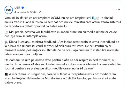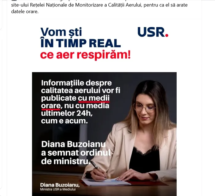 Ce anunța ministra Mediului de Crăciun și la începutul anului, legat de modul cum românii sunt informați despre poluarea aerului, s-a dovedit a fi de fapt o acțiune de PR a USR.