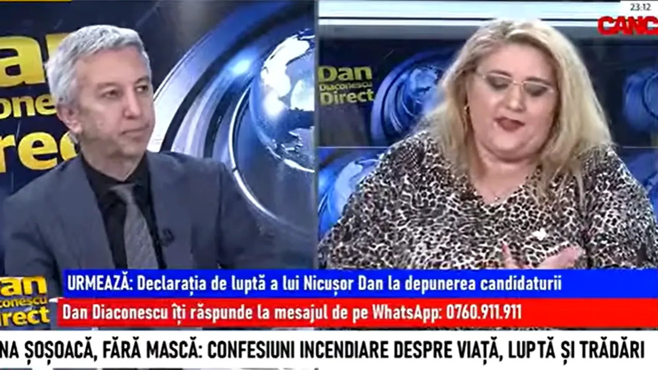 Diana Șoșcoacă a fost invitată în emisiunea „Dan Diaconescu Direct”. Ea a fost întrebată, printre altele, dacă s-a bucurat când a murit Nicoalae Ceaușescu și a căzut regimul.