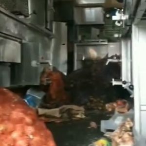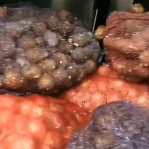 Unitățile de depozitare de la bord arată saci peste saci de cartofi și ceapă.