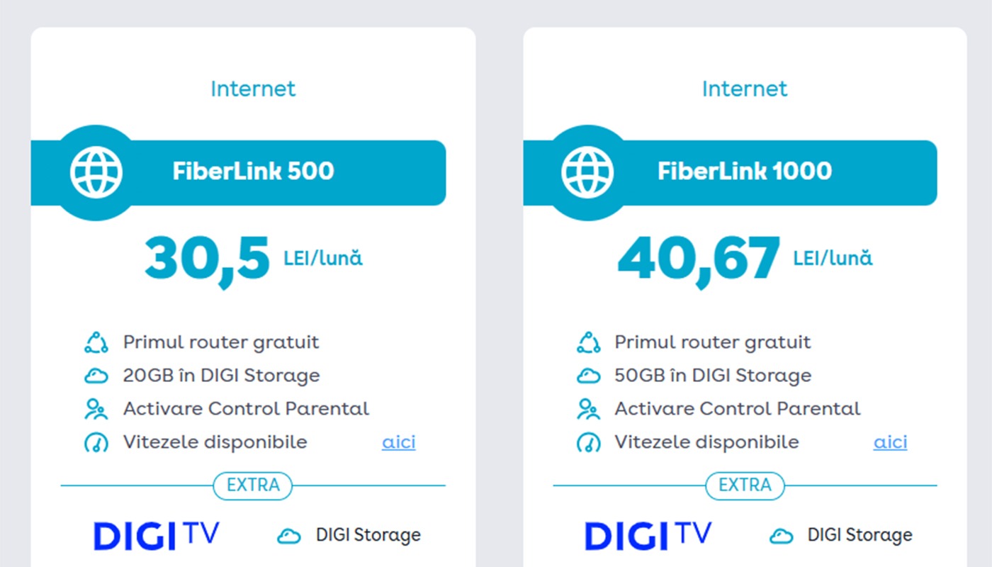 În cazul pachetului de Internet FiberLink 1000, costul lunar este de 40,67 de lei. Ce include acest pachet: