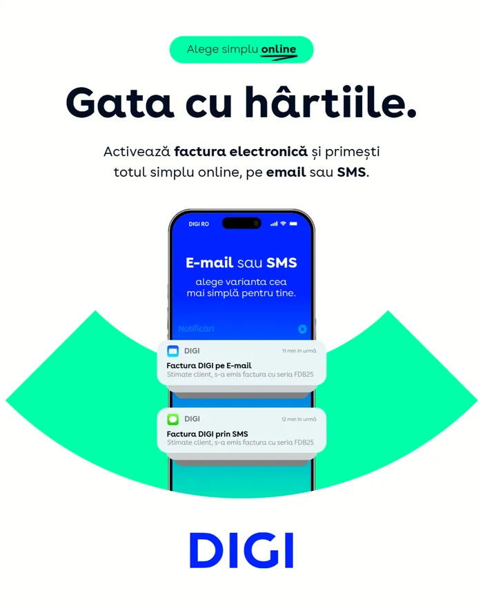 Potrivit anunțului, utilizatorii pot activa gratuit factura electronică, urmând să primească notificări prin SMS sau e-mail imediat ce documentul este emis. Astfel, clienții știu în timp real când apare factura și pot decide momentul în care o achită, fără riscul de a o pierde sau de a depăși termenul de plată.