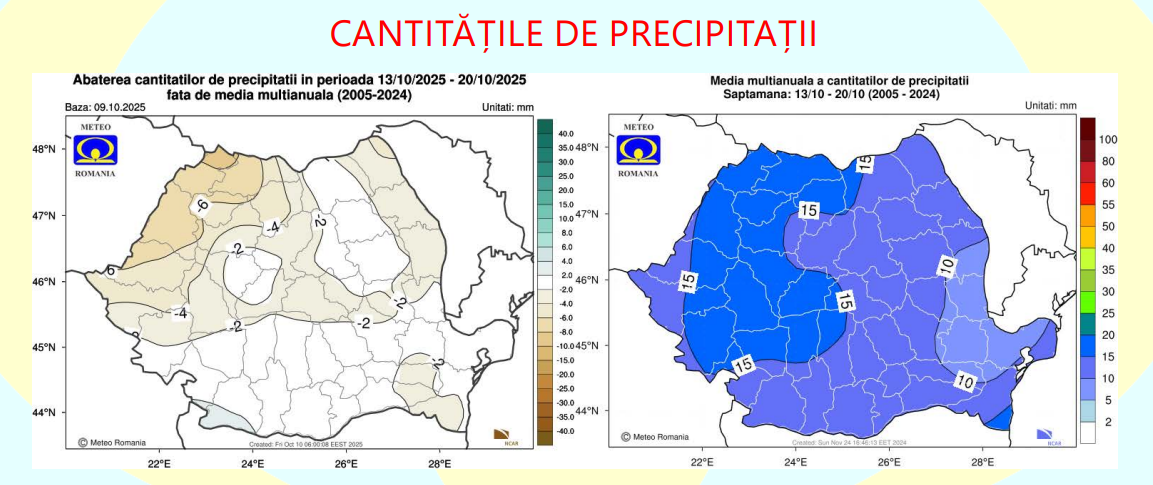Regimul pluviometric va fi local deficitar în regiunile vestice și nordvestice, iar în rest va fi apropiat de cel normal.