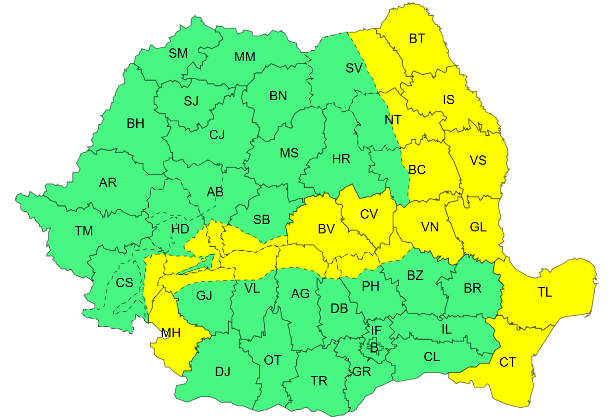 În această dimineață, la ora 7:00, România a fost „verde”, potrivit informațiilor furnizate de Administrația Națională de Meteorologie, nu au mai fost emise coduri roșii, portocalii sau galbene, iar temperaturile se încadrează în normalitatea acestei perioade.