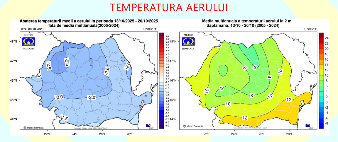 Pentru săptămâna următoare, ANM anunță că valorile termice vor fi ușor mai coborâte decât cele specifice, pe întreg teritoriul României, dar mai ales în regiunile intracarpatice.