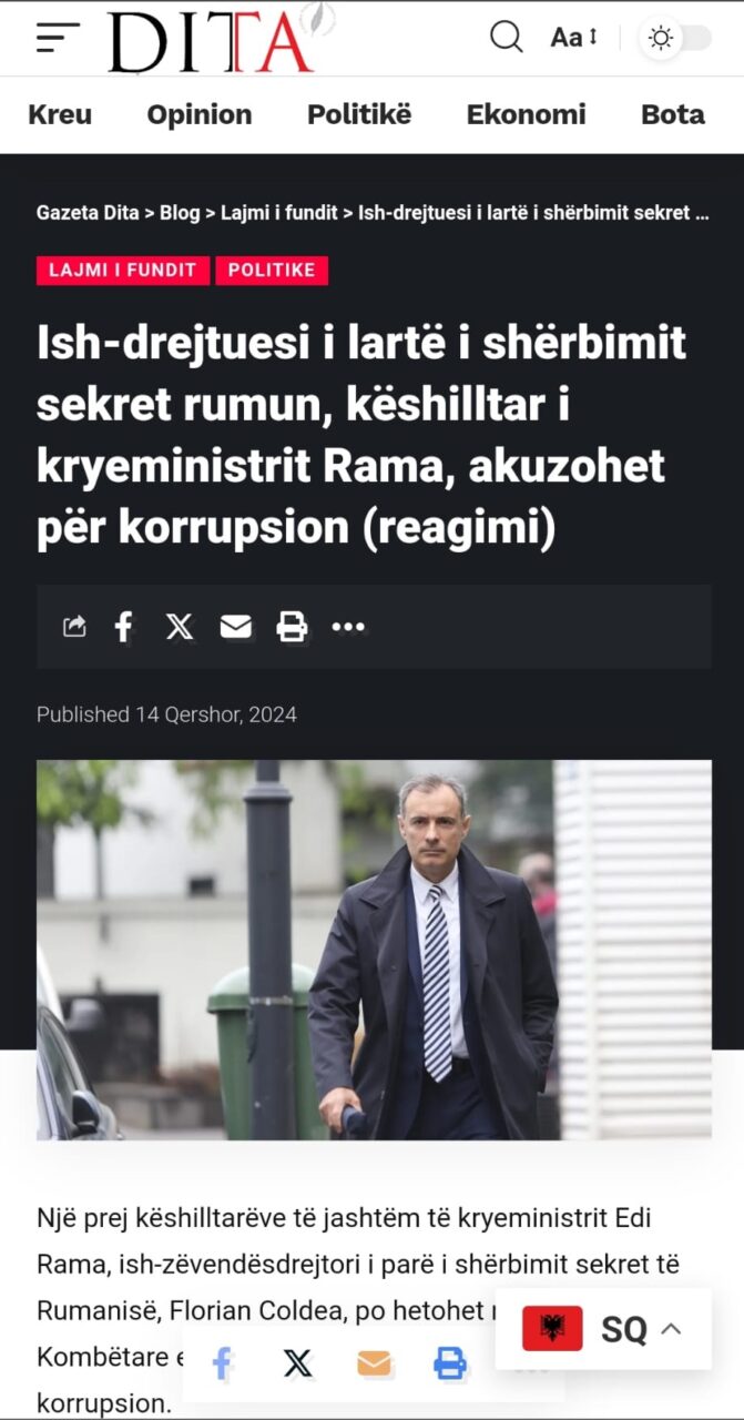 Presa albaneză mai relatează că și actualul premier Marcel Ciolacu și-a exprimat îngrijorarea că Florian Coldea, după ce a lucrat în Serviciul Român de Informații, a fost consultant pentru un terț, relatează presa albaneză, care menționează ca prim-ministrul României ar fi promis modificări legislative pentru a preveni situații similare.