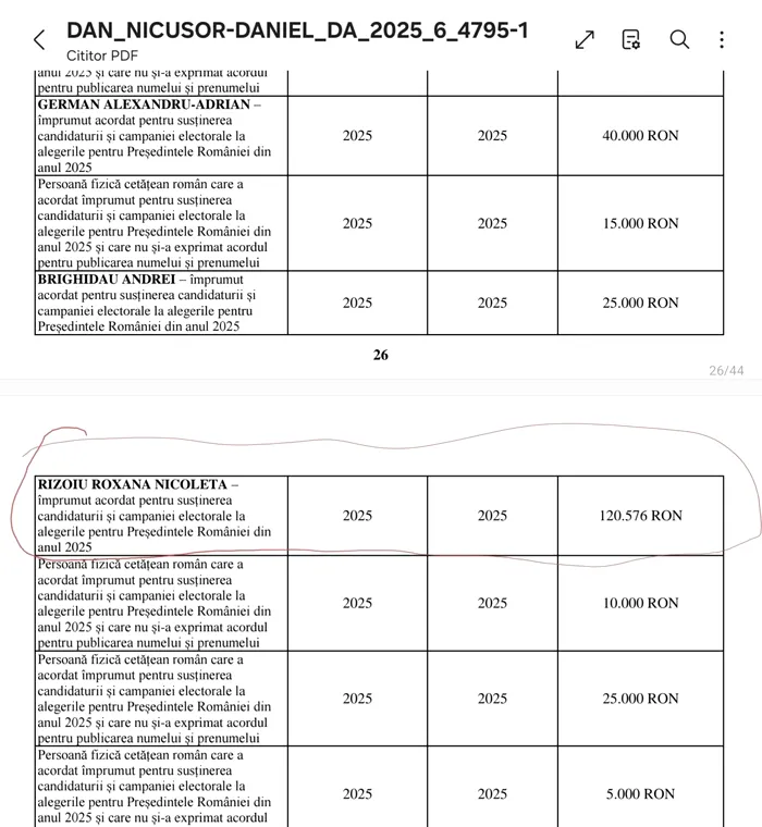 Pentru că totuși vorbim de avocatul Poporului cred că Poporul are dreptul să știe că, pe de o parte, dna Rizoiu este magistrat asimilat pensionat la 50 de ani, beneficiar deci de hulită de către chiar USR a unei pensii speciale, și, pe de altă parte, că este unul dintre finanțatorii campaniei președintelui Nicușor Dan, cu suma de 120.576 lei. Altfel spus, este creditoare a domnului președinte, care trebuie să-i restituie această sumă până la sfârșitul anului. Iată deci că în politică nimic nu se pierde, totul se conservă”, a scris Toni Neacșu. (CV -ul Roxanei Rizoiu poate fi consultat AICI)
