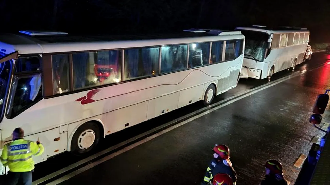 Două autocare au fot implicate, miercuri seara, într-un accident pe DN 1, în zona Poiana Bradului din județul Sibiu. În cele două autocare se aflau 90 de persoane (doi șoferi, patru profesori și 84 de copii cu vârste cuprinse între 15-18 ani).