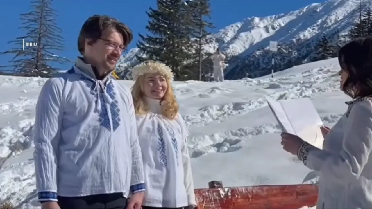 Astfel, 12 iubitori ai muntelui s-au hotărât să se căsătorească în ziua dedicată iubirii în Munții Făgăraș. Au băut șampanie și au dansat în bocanci și s-au rostogolit în zăpadă.