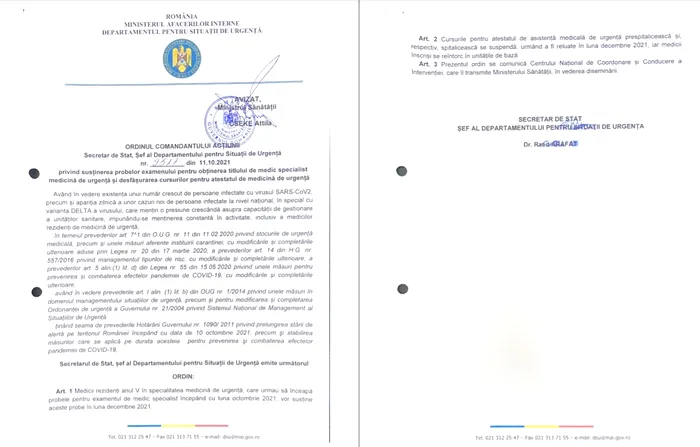 2. Medicii rezidenți de anul V în specialitatea medicină de urgență care urmau să înceapă probele pentru examenul de medic specialist începând cu luna octombrie 2021 vor susține aceste probe în luna decembrie 2021.