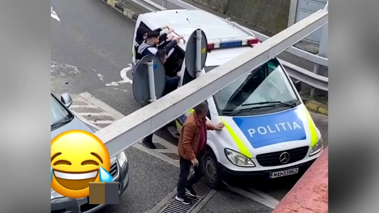 O dubă a polițiștilor din Vâlcea s-a înfipt într-o grindă a unui a unui pasaj de cale ferată din Râmnicu Vâlcea. Mai mulți civili au ajutat la deblocarea autopspecialei, momentul fiind filmat. Imaginile s-au viralizat rapid.