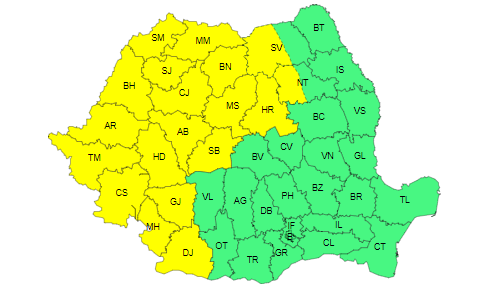 Potrivit ANM, în intervalul 27 iunie, ora 12 – 28 iunie, ora 03, în Banat, Crișana, Maramureș, cea mai mare parte a Transilvaniei și local în Oltenia și la munte vor fi perioade cu instabilitate atmosferică. Aceasta se va manifesta prin averse torențiale, intensificări ale vântului (rafale în general de 50…70 km/h), vijelii, grindină și descărcări electrice. În intervale scurte de timp sau prin acumulare cantitățile de apă vor fi de 20…30 l/mp și izolat de peste 40 l/mp.