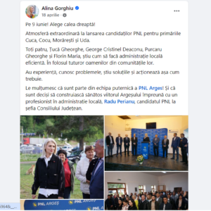 Începând cu campania electorală de la locale, de anul acesta, primarul comunei Cocu, din Argeș, Gheorghe Țucă, trecea de la PSD la PNL. Președinta organizației din județ, ministrul Justiției, Alina Gorghiu, anunța noile achiziții de membri: „Toți patru, Țucă Gheorghe, George Cristinel Deaconu, Purcaru Gheorghe și Florin Maria, știu cum să facă administrație locală eficientă. În folosul tuturor oamenilor din comunitățile lor ” și îndemna electoratul să aleagă „calea cea dreaptă”. Anul trecut, în august, Gheorghe Țucă era dus la audieri sub acuzația de delapidare(acesta a plătit pentru un serviciu fictiv de consultanță suma de 100 000 de lei unor firme), iar anul acesta, același edil a fost filmat în timp ce fura curent de la stâlpul de electricitate de pe domeniul public.
