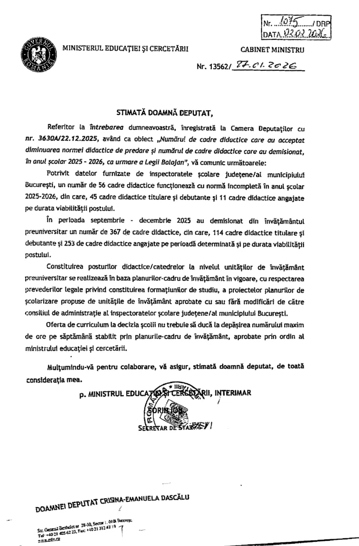 Sistemul de învățământ preuniversitar se confruntă cu un val de plecări după implementarea măsurilor din Legea 141/2005, cunoscută sub numele de „Legea Bolojan”. Potrivit unui răspuns oficial al Ministerului Educației și Cercetării, aproape 370 de cadre didactice au părăsit sistemul în primele module ale anului școlar 2025-2026. Această reacție vine în contextul în care noua legislație a crescut norma didactică de predare cu o medie de două ore pe săptămână, o modificare fără precedent în ultimii 30 de ani.