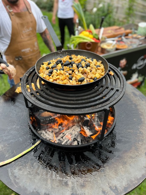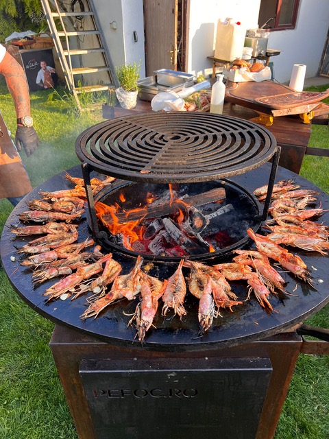Printre preparatele servite la petrecere se numără: brânzeturi nobile, Hamon iberico tăiat la cuțit, servit cu pâine pe plită, supă de fructe de mare, Tamahock maturat 28 de zile, iar lista poate continua.