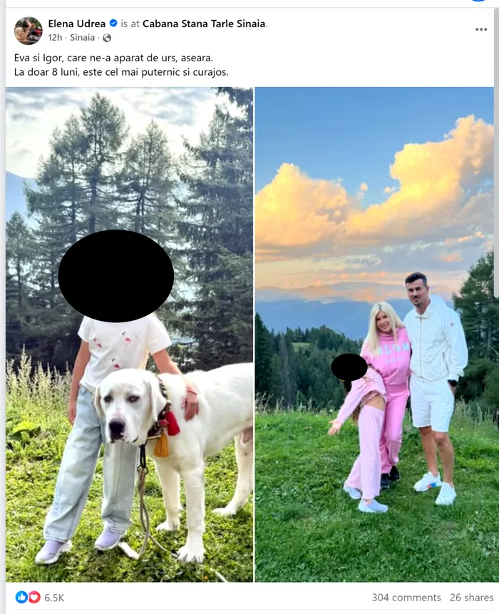 „Igor, care ne-a apărat de urs, aseară. La doar 8 luni, este cel mai puternic și curajos”, a scris Elena Udrea pe Facebook.