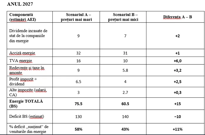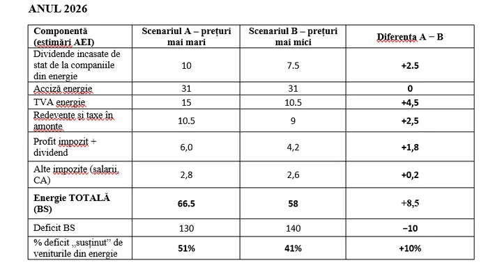 Între 2020 și 2025, veniturile directe din energie la bugetul de stat au variat între 45 și 83 de miliarde de lei anual. În aceeași perioadă, între 43–63% din deficit a fost sprijinit de veniturile din energie. Fără aceste prețuri ridicate, deficitul ar fi urcat la 10–12% din PIB.