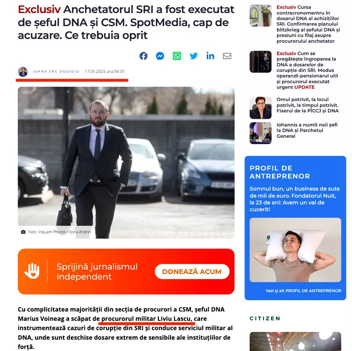 Totul se petrece în condițiile în care procurorul militar se plânge în presă de peste 2 ani, încercând să-și creeze o imagine publică care să-l portretizeze ca magistratul militar din DNA care urma să ancheteze achiziții importante făcute de SRI.