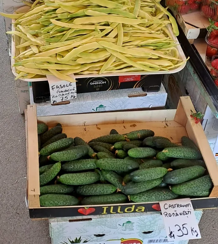 Nu este de neglijat însă nici prețul unui kilogram de fasole galbenă „românească” – 75 de lei. Iar castraveții, tot „românești”, ajung să coste 35 de lei kilogramul.