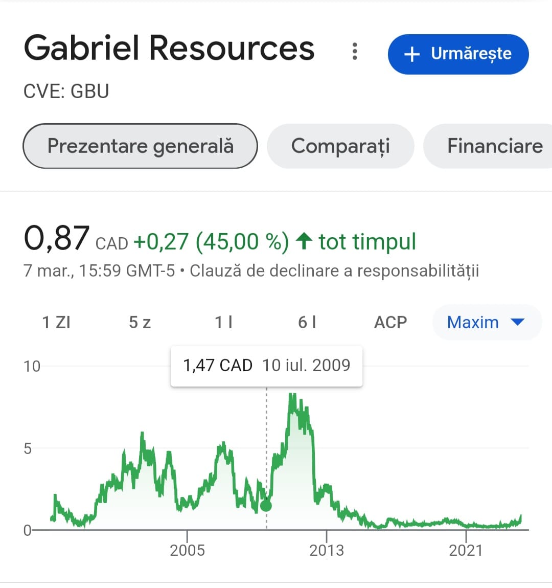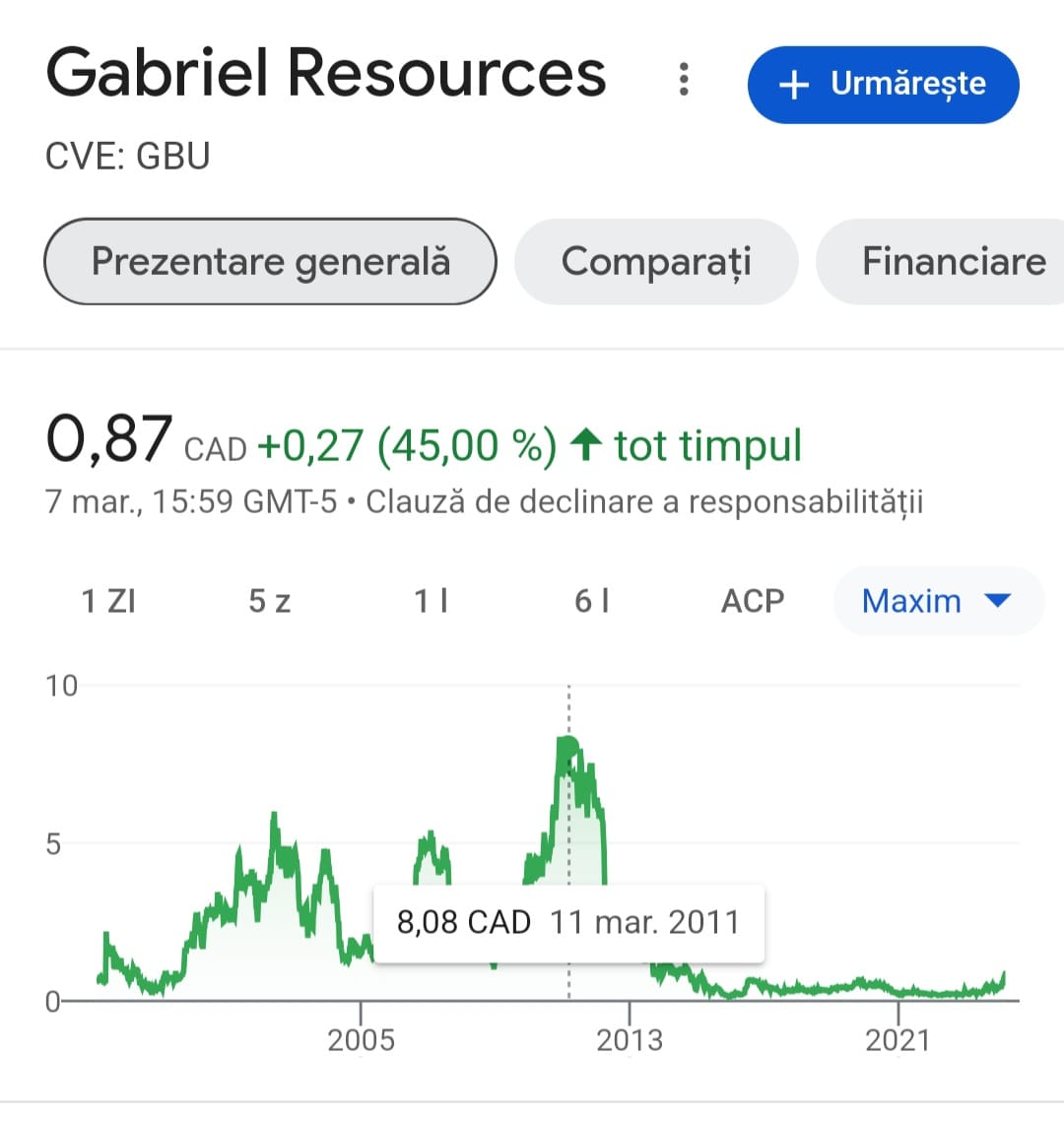 Mai 2020 (Băsescu declară că exploatarea Roșia Montană se va face) preț acțiune 8,02$ – profitul pe bursă încă 4 miliarde de $.