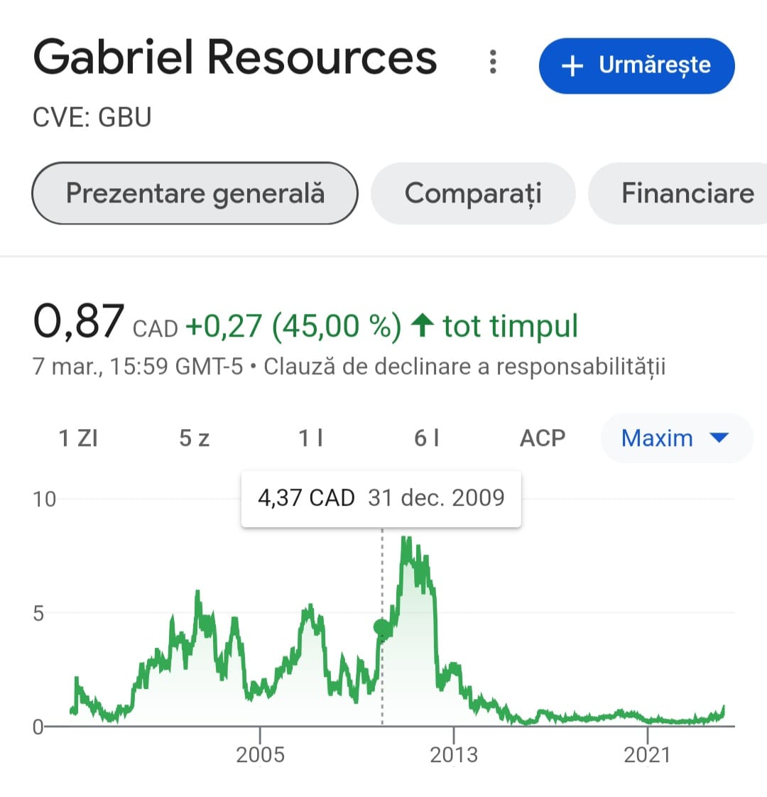 Decembrie 2009 (Băsescu câștigă al doilea mandat și declară că exploatarea Roșia Montana trebuie să se facă) 4,37$ – profitul pe bursa 3 miliarde de $.