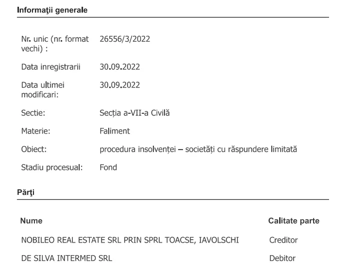 Vineri, 30 septembrie, la Tribunalul București – Secția a VII-a Civilă – a fost înregistrat dosarul 26556/3/2022, având ca obiect ”declanșarea procedurii insolvenței – societăți cu răspundere limitată”.