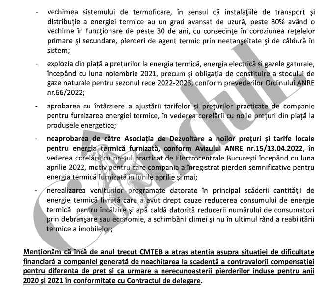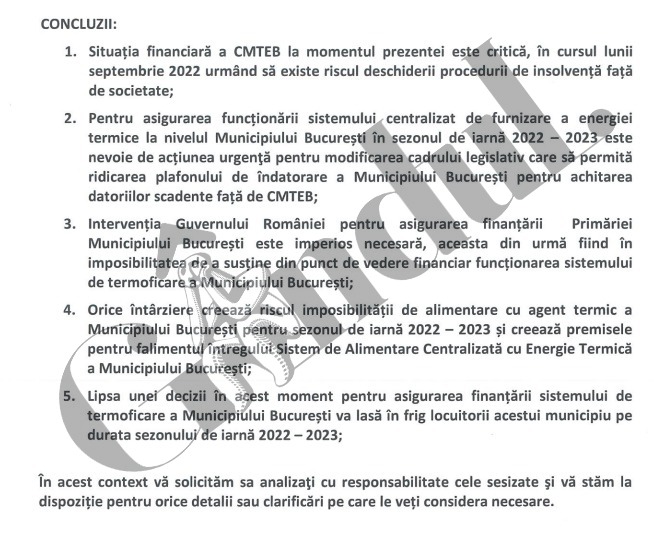 La finalul adresei transmise către Primăria Capitalei, reprezentanții Termoenergetica prezintă, punctual, și concluziile, care nu sunt deloc liniștitoare pentru bucureșteni.