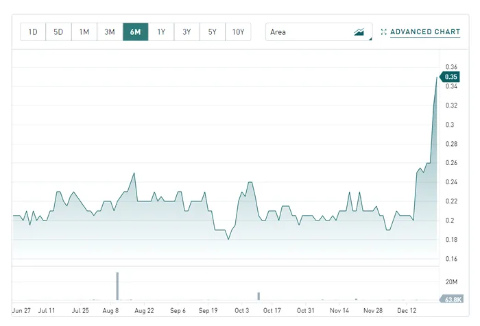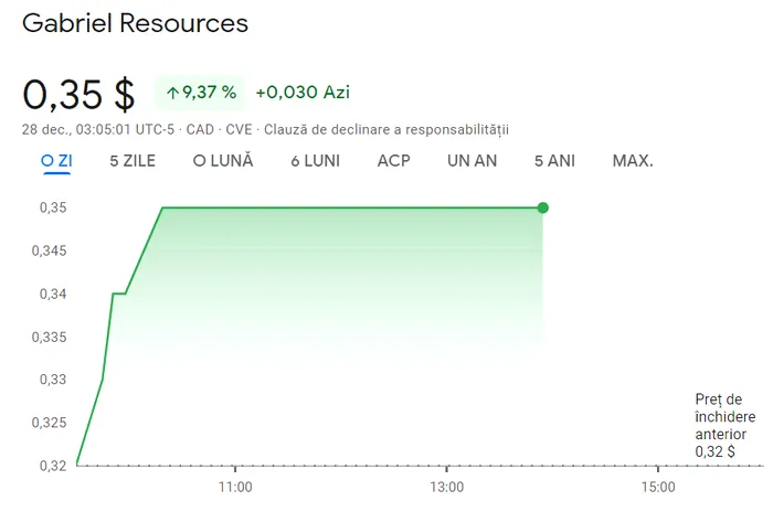 Creșterea prețului acțiunilor companiei Gabriel Resources Ltd. se poate observa, cu ușurință, și pe graficul de mai jos: