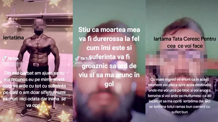 ”Cu mare regret vă anunț că, în acest moment, voi pleca spre acea destinație unde mă voi urca pe bloc, voi arunca benzină și voi arde. Vă mulțumesc că ați încercat să mă opriți! Iertați-mă, dar aici se termină totul! Rămas bun, oameni cu suflet bun! Iartă-mă, Tată Ceresc, pentru ceea ce voi face!”, este un alt mesaj distribuit pe TikTok, fiind însoțit de o filmare în care bărbatul are ochii în lacrimi.