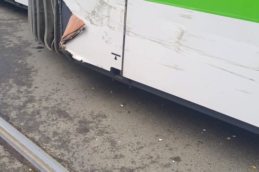 Incidentul a avut loc luni seară, pe linia 25, iar din imagini se poate vedea cum tramvaiul deraiază în linie dreaptă, apoi circulă secunde bune sărit de pe șine, până se lovește de un alt tramvai care circulă din sensul opus.