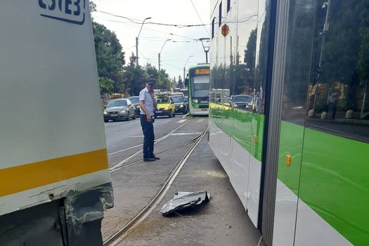 Gândul publică imagini video exclusive cu momentul în care un tramvai Imperio, de pe linia 25, deraiază, apoi se lovește de un alt tramvai care circulă din sens opus.