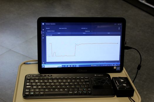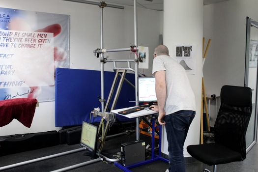 Cei care trec pragul laboratorului de psihoneuromotricitate au ocazia să vadă, cu ajutorul tehnologiei, pe ecranul unui computer, cum arată un anumit tip de mișcare efectuată pe aparatele din sala de sport special amenajată.
