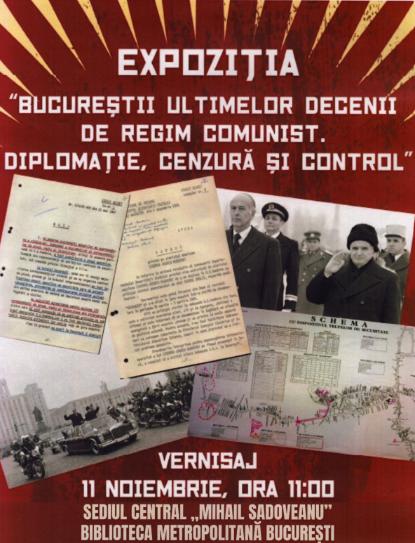 La Sediul Central „Mihail Sadoveanu” al Bibliotecii Metropolitane Bucureşti (BMB) se va deschide, începând cu data de 11 noiembrie 2024, expoziția stradală „Bucureştii ultimelor decenii de regim comunist. Diplomaţie, Cenzură şi Control”. Trecătorii vor avea privilegiul de a descoperi imagini sugestive dintr-o perioadă comunistă în care regimul aflat la conducerea României, prin cenzură și control total, deținea toate pârghiile puterii.