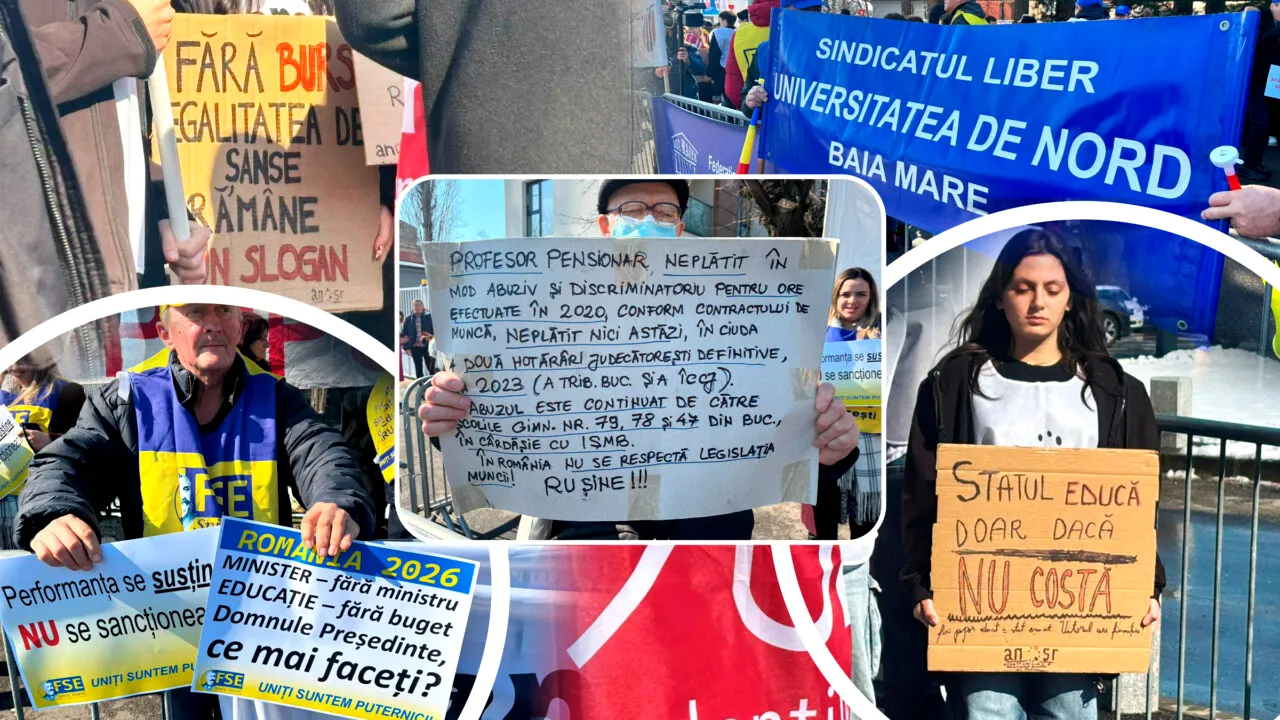 Update 12:20: Cadrele didactice, nemulțumite de promisiunile false ale președintelui Nicușor Dan:” Educația, la ora actuală, se confruntă cu probleme de toate tipurile, începând de la resursa umană până la cea materială. Nemulțumirile noastre au ajuns la limita răbdării și a înțelegerii. Noi, cei care facem educație, am ajuns să fim puși în această postură, care nu este confortabilă nici pentru noi, însă nu mai avem alte mijloace prin care să atragem atenția conducerii țării.