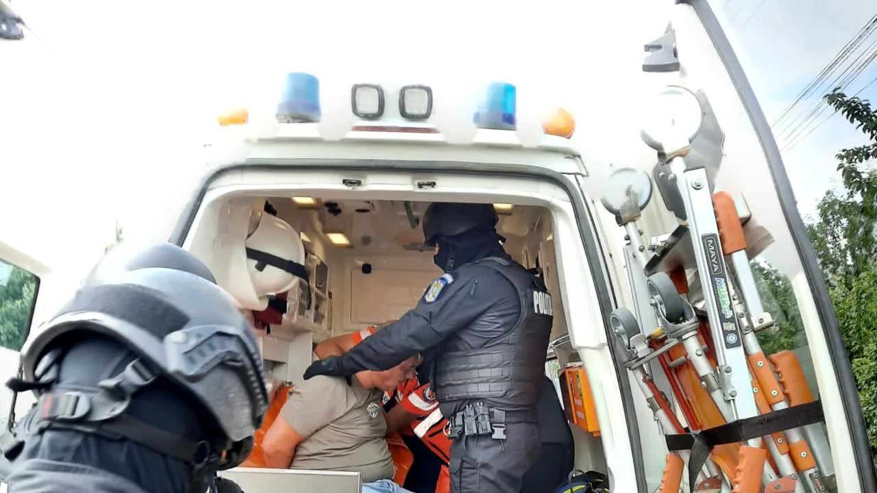 S-a luat hotărârea intervenției în forță, bărbatul fiind extras din autoturism, încătușat și, ulterior transportat la o unitate spitalicească din municipiul București.